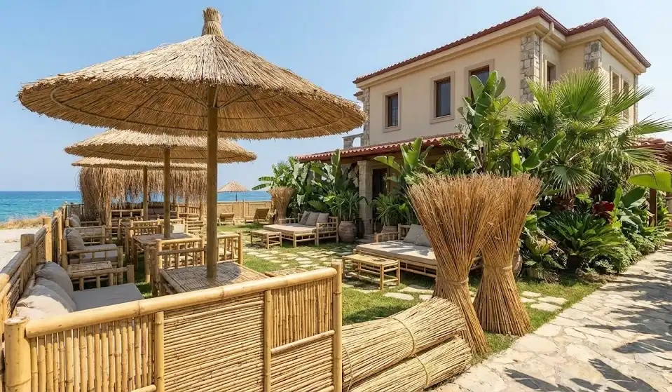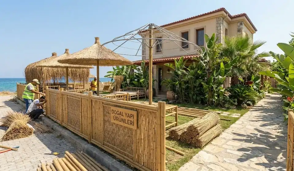 Plastik çimlerin yapaylığından uzak durun. Doğal bambu tonları ve dokusu, mekanınıza anında sıcak bir tatil köyü havası katar. Güneşi yansıtmaz, gözü yormaz ve doğayla bütünleşir.